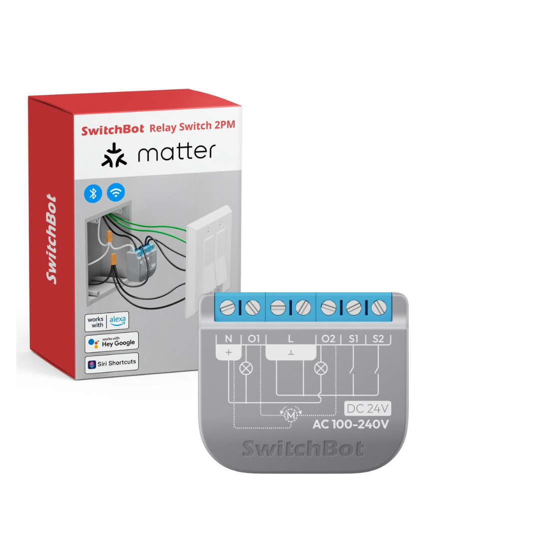 SwitchBot Relay Switch 2PM, iki ayrı devreyi kontrol edebilen, enerji tüketimini ölçen ve Matter ile Wi-Fi destekli çalışan akıllı bir röle anahtarıdır. Geleneksel ışık veya elektrikli cihazları kolayca akıllı hale getirir ve hem mobil uygulama hem de sesli asistanlar üzerinden kontrol imkânı sağlar.