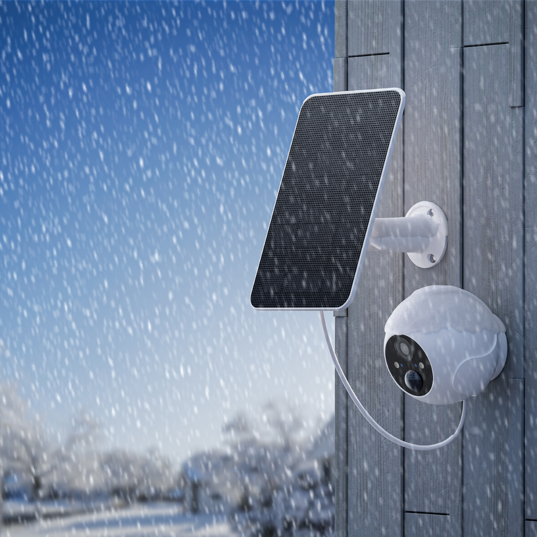 Güneş Enerjili Sürekli Şarj Dış mekân kamera güneş paneli, uyumlu akıllı güvenlik kameralarının bataryasını güneş ışığı ile sürekli olarak şarj eder. Böylece manuel şarj ihtiyacını azaltır ve kesintisiz kullanım sağlar.