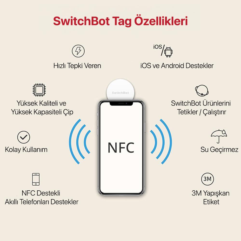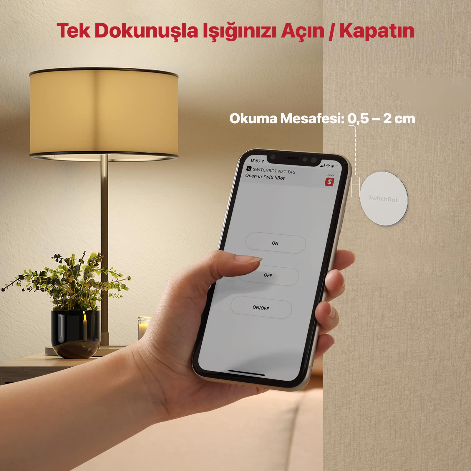 Uygulama ile Kolay Tanımlama SwitchBot uygulaması üzerinden NFC etiketi kolayca tanımlayabilir, istediğiniz cihaz veya sahne ile eşleştirebilirsiniz.